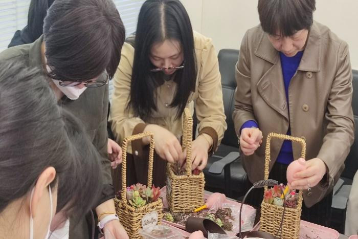 為順利舉辦此次活動,人力行政部定制了活動橫幅并邀請了專業(yè)的多肉種植老師為大家講解示范。3月8日當(dāng)天下午,人力行政部精心布置好會場與多肉種植老師一起等待全體女同胞們進(jìn)入會場。